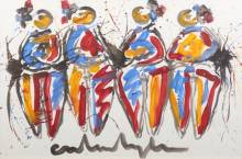 Anton Heyboer (1925-2005), vier vrouwen, aquarel, m.o. gesigneerd, 57,5 × 87,5 cm, daarbij boek: H. van der Meyden 'De drie bruiden van Anton Heyboer', uitg. Teleboek, Amsterdam, 1974