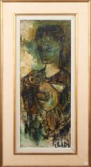 Marijke Boomsma (1946-1992), abstracte compositie met figuren, gouache, l.o. gesigneerd, 146,5 × 78 cm