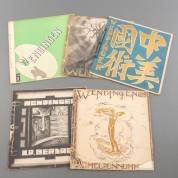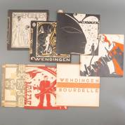 Vijf nummers 'Wendingen'. 1920-1931. Groot 4to. Oorspr. omslagen, op Japanse wijze gebonden met raffia. III,11-12: H.P. Berlage, Ontwerp voor het Gemeente-Museum te 's-Gravenhage; IV,3: Oost-Aziatische kunst uit de Petrucci-collectie te Amsterdam; V,8-9: schelpennummer. Door R.N. Roland Holst; VI,2: studies van architect M. de Klerk; XII,6: schilderwerk Pyke Koch, K. Postma en A.C. Willink -omslag van eerste en derde titel beschadigd-, 33 × 33 cm