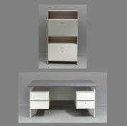 Grijs stalen bureau en archiefkast, beide ontwerp André Cordemeijer, uitvoering Gispen, bureau 75 × 150 × 65 cm