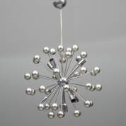 Zevenlichts verchroomde 'Spoetnik' hanglamp, uitvoering onbekend -ketting niet vast aan plafondstuk/lamp, sleets-, circa Ø 52 cm