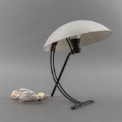 Stalen bureaulampje met grijze kap op zwartgelakt frame, ontwerp Louis Kalff, uitvoering Philips, midden 20e eeuw -brandplekje en vlekjes op kap-, 38 × 27 × 30 cm