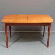 Ovale teakfineer tafel met uitklapbaar tussenblad, jaren '60, maat ingeklapt 73 × 130 × 85 cm, lengte tussenblad 40 cm