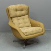 Fauteuil bekleed met mosterdgele stof op draaibaar aluminium onderstel, ontwerp Alf Svensson, uitvoering DUX, Zweden, jaren '60 -gebruikssporen-