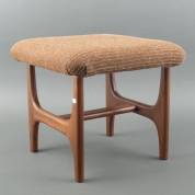 Teakhouten ottoman met bruin stoffen bekleding, jaren '50/'60, 38 × 43 × 43 cm