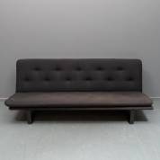 Bank met zwarte wollen bekleding, op zwart metalen onderstel, model C683, ontwerp Kho liang Ie, uitvoering Artifort, -bekleding deels verkleurd- 68 x 180 x 84 cm