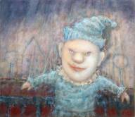 Jose van Kleef (1956), figuur in landschap, olieverf op board, r.o. gesigneerd en gedateerd '91, 35 × 40 cm