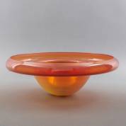 Glazen schaal met rode ziel en gele rand, serie Ikora, ontwerp Karl Wiedmann, uitvoering WMF, Duitsland -lichte oppervlakte krassen-, 7 × Ø 41 cm