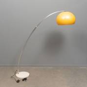 Booglamp met gele kunststof kap op verstelbare voet, derde kwart 20e eeuw 156 × 130 × 36 cm