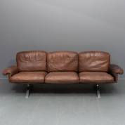 Bruin lederen driezits bank op aluminium onderstel, model DS-31, uitvoering De Sede -droogtescheurtjes in de armleuningen-, circa 74 × 215 × 75 cm