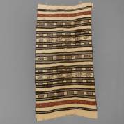 Marokkaanse kelim, samengesteld uit smalle repen -stukje ingescheurd aan één korte zijde-, 258 × 128 cm
