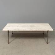 Salontafel met travertin blad op stalen onderstel, derde kwart 20e eeuw, 39 × 125 × 52 cm
