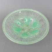 Groen glazen dikwandige schaal, serie Ikora, ontwerp Karl Wiedmann, uitvoering WMF, Duitsland, circa 1930, Ø 45 cm