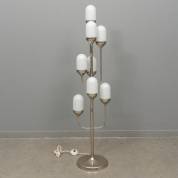 Achtlichts vloerlamp met witte opaline kappen op verchroomde stam, jaren '60/'70, 140 × 23 × 23 cm