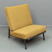 Laag buisframe stoeltje met mosterdgele kussens, ontwerp Alf Svensson, uitvoering DUX, Zweden, jaren '60