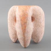 Mogelijk Monique Neyzen (hedendaags), abstract stenen beeld in de vorm van drie verbonden poten, deels gepolijst en deels bewerkt, niet gesigneerd, 33 × 30 × 24 cm