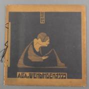 Nummer 'Wendingen': VII,1: Teekeningen en etsen van S. Jessurun de Mesquita. 1925. Groot 4to. Oorspr. omslag naar een houtsnede van De Mesquita, op Japanse wijze met raffia gebonden. Met advertentiekatern -raffia laat gedeeltelijk los-, 33 × 33 cm