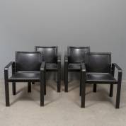 Vier zwarte tuiglederen stoelen, model Golfo Dei Poeti, ontwerp Jacques Toussaint & Patrizia Angeloni, uitvoering Matteo Grassi, Italië, jaren '70
