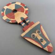 Gesneden houten Bedu masker met rood-wit-blauw decor, Baule, Ivoorkust, laat 20e eeuw, 99 × 40,5 cm
