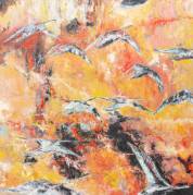 Constantijn Molenkamp (1959), vogels bij avondlicht, olieverf op doek, op achterzijde gesigneerd, 160 × 160 cm