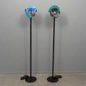 Paar vloerlampen met blauw-turquoise-rood glas en zwarte voet, ontwerp Ottavio Missoni, glas uitvoering Arte Vetro Murano, gemerkt met etsmerk in glas, 190 × Ø 30 cm