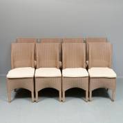 Acht kakikleurige papercord stoelen met beige kussentjes, uitvoering Vincent Sheppard/Lloyd-Loom -één messing ferrule ontbreekt-