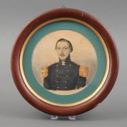 Hollandse School: portret van luitenant Simon Carel Leonard Mesch op de leeftijd van 32 jaar, aquarel, niet gesigneerd, verso toegeschreven aan P.J. Bruinings, 1854, Ø 14,8 cm, Mech is geboren te Utrecht, het Nationaal Militair Museum heeft een foto van hem op een latere leeftijd, objectnummer 00106673-013