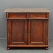 Mahonie penantkastje met grijs natuurstenen blad waaronder twee lades en twee deuren, eind 19e eeuw -droogtescheur aan één zijde, blad niet origineel-, 100 × 115 × 60