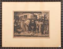 Fernand Rousseaux (1892-1971), 'Exploit d'Huissier', drogenaald ets 73/100, r.o. gesigneerd, 38 × 27 cm