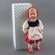 Pop 'Bärbel', in originele doos met certificaat, ontwerp en uitvoering Schildkröt-puppen, Duitsland -kleding iets verkleurd, vliegenpoepjes op de kleding-, 48 cm
