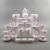 Porseleinen koffie- en theeserviesgedeelte met bietenrood bloemdecor China Purper, uitvoering August Warnecke, Duitsland, hoogte koffiepot 19 cm