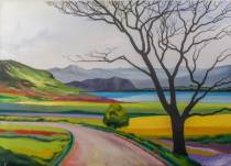 Troy Wilston-Ripsom (1969), landschap met boom, acrylverf op doek, r.o. gesigneerd -lichte schade-, 66 × 92 cm