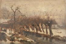 Pieter de Regt (1877-1960), winters landschap met knotwilgen, olieverf op paneel, r.o. gesigneerd, 20,6 × 32,3 cm