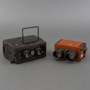 Stereocamera en stereokijker: camera model Le Megascope, uitvoering E. Caillion -kijker met defecten-