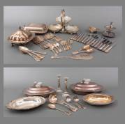Diverse verzilverde voorwerpen, waaronder: terrines en een bestekgedeelte