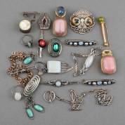 Diverse bijouterieën, waaronder: zilveren collier met jasseronschakel, waaraan zilveren bedels, en bloedkoraal collier met zilveren slot, gewicht zilver 70 gram