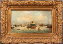 Hollandse School: havengezicht, olieverf op doek, r.o. gesigneerd G. Verrijl of Verzijl, 20e eeuw, 25 × 45 cm
