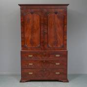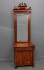 Kersengefineerd penantkastje met spiegelopstand, eind 19e eeuw, 245 × 81 × 45 cm