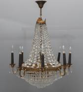 Kroonluchter met kristallen pegels en messing monturen, circa 85 × Ø 65 cm