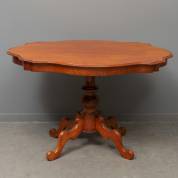 Mahonie tafel met geschulpte rand op vierspantpoot, biedermeier, 19e eeuw -lichte gebruikssporen-, 77 × 120 × 88 cm