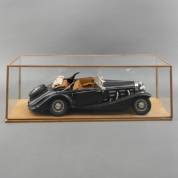 Mercedes-Benz 500K modelauto, uitvoering Pocher, schaal 1:8, in glazen vitrine -lichte gebruikssporen, nummerplaat voor los aan een kant-