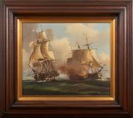 Schilderij: zeeslag, olieverf op doek, r.o. onduidelijk gesigneerd, 20e eeuw, 50 × 60 cm