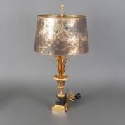 Drielichts tafellamp, de voet in de vorm van een goudkleurige plantenvaas, afmetingen inclusief kap 75 × Ø 37,5 cm