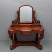 Mahonie kaptafel met spiegelopstand, derde kwart 19e eeuw -gebruikssporen op bovenblad, één achterpootje los maar aanwezig-, 146 × 121 × 55 cm