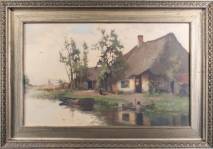 Johan Hendrik Kaemmerer (1894-1979), boerderij aan de waterkant, olieverf op doek, r.o. gesigneerd -beetje verfverlies, enkele vlekjes-, 49 × 79 cm
