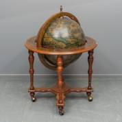 Met papier belijmde barglobe, staand op wieltjes, 20e eeuw -papier laat her en der los-, 105 × Ø 73 cm