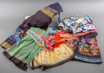 Diverse Chinese zijde geborduurde kledingonderdelen, eerste helft 20e eeuw -verkleuringen, beschadigingen-, lengte zwarte rok 110 cm