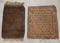 Kaukasisch tapijt Derbent -één rand ingekort, sleets-, 124 × 104 cm, en Perzisch tapijt Belouche, 145 × 78 cm