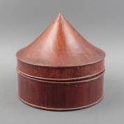 Gelakt houten hoedendoos, Zuidoost-Azië -barst in dekselrand-, 33 × Ø 36 cm