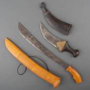 Arabische dolk en Indonesische machete -schedes defect-, die laatste 59 cm